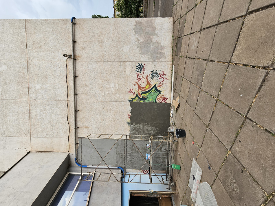 Після цього розпочалися підготовчі роботи: закупівля матеріалів, підготовка стіни, організаційні процеси. До підготовки поверхні долучився знайомий Данила Павло Панченко, який наразі несе службу в 10 армійському корпусі Сухопутних військ ЗСУ. Він безкоштовно допоміг із цим етапом.