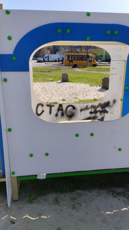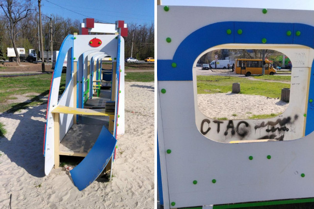 Обладнання облаштували, щоб створити безпечний простір для ігор і розвитку найменших мешканців району, та вже незабаром вандали пошкодили та розмалювали його.