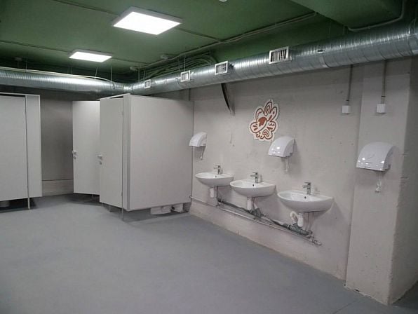 Окрему увагу приділили базовим умовам: у сховищі з'явилися шість вбиралень і санітарна зона з гарячою водою — встановили водонагрівачі та сушарки для рук.