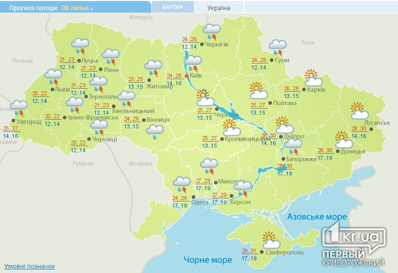 Также синоптики прогнозируют ливни и грозы.