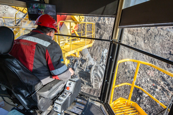 Экипаж отмечает, что у 12-кубового экскаватора высокая скорость погрузки, хорошая панорамная обзорность, работать на такой машине комфортно и безопасно. Двухмодульная кабина оборудована мониторами и камерами, системой кондиционирования и теплоизоляции. Техника обеспечена современным приводом, системами управления, диагностики, автоматической централизованной смазки и пожаротушения.