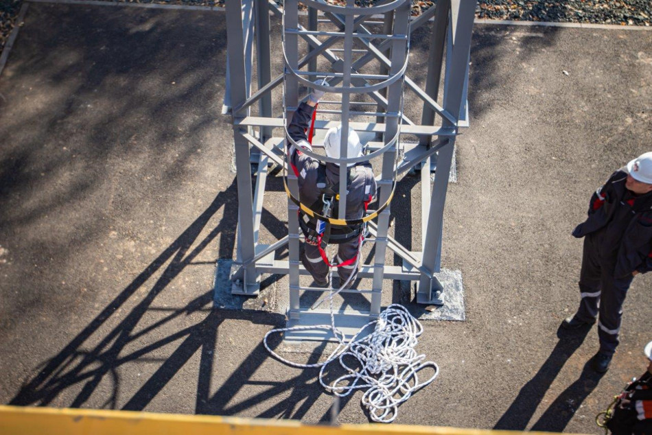 Учебный полигон состоит из четырех тренировочных зон. Они имитируют различные рабочие площадки и позволяют отрабатывать навыки по 30-ти видам работ на вертикальных анкерных линиях и лестницах, подъемах и спусках по опорам, а также по самостоятельной эвакуации. Благодаря специальному оборудованию работников цехов обучают приемам безопасной работы в пространстве без опор и в ограниченном пространстве. Кроме того, на полигоне планируют осваивать современные страховочные системы.