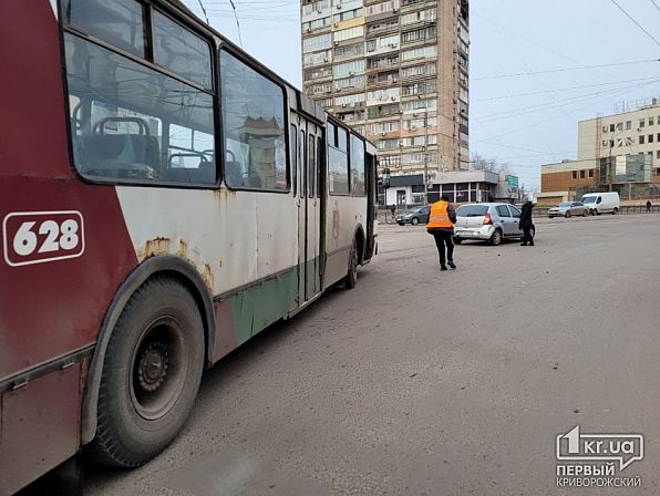 На кольце 95 квартала в Кривом Роге столкнулись троллейбус и легковушка