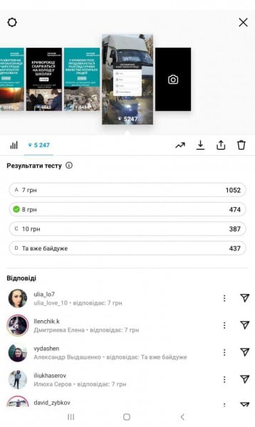 Всего в опросе в Instagram «Сколько должен стоить проезд» за день поучаствовали 2 350 пользователей и пользовательниц.