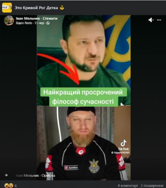 Фейсбук-група «Это Кривой Рог, Детка» наповнена наративами проти влади президента, поширюються пости, які містять наративи російської кампанії про те, що Зеленський нібито нелегітимний.